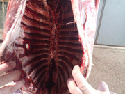 Epäilisin, että myös kupariluoti on auennut noinkin pienessä eläimessä Vertymää oli kylkien kalvoissa aika hyvinkin ja lapojen ja kyljen välissä, mutta itse lavat oli oikein hyvin jääneet molemmat puhtaaksi ja syöntikuntoon.