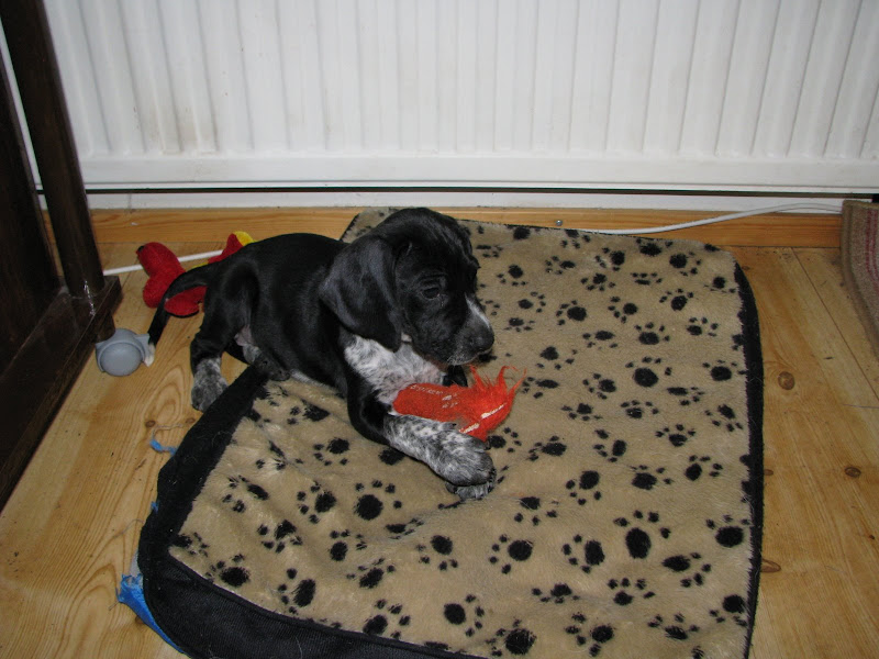 Tässä tämä meidän seisoja/ajokoira. Ikää 7 viikkoa,