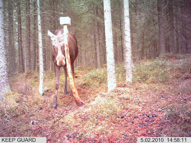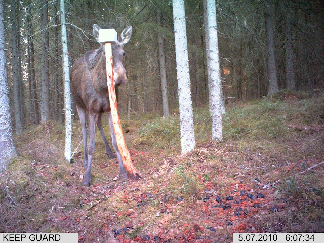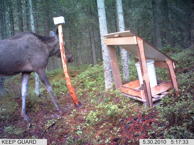 Äkkiä hirvikin "tottui" tuohon jyväkaukaloon.. Viikon sisällä tuli kivee nuoleskeleen.. |